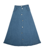 A-line skirt with button and pocket detail. Comes in blue, black and navy.
