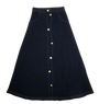 A-line skirt with button and pocket detail. Comes in blue, black and navy.