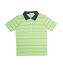 Short sleeve shirt with contrast color collar, print, and button detail. Comes in butter, green, and white.