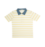 Short sleeve shirt with contrast color collar, print, and button detail. Comes in butter, green, and white.