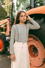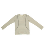 Long sleeve ribbed t-shirt with graphic print and stitching detail. Comes in blue, green, and red.