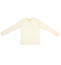 Long sleeve crewneck ribbed t-shirt with button and logo detail. Comes in green, pink, and white.