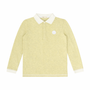 Long sleeve shirt with contrast color collar and logo detail. Comes in blue, white, and yellow.