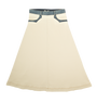 Skirt with contrast color waist and pocket detail with zipper closure. Comes in blue, stone, and white.