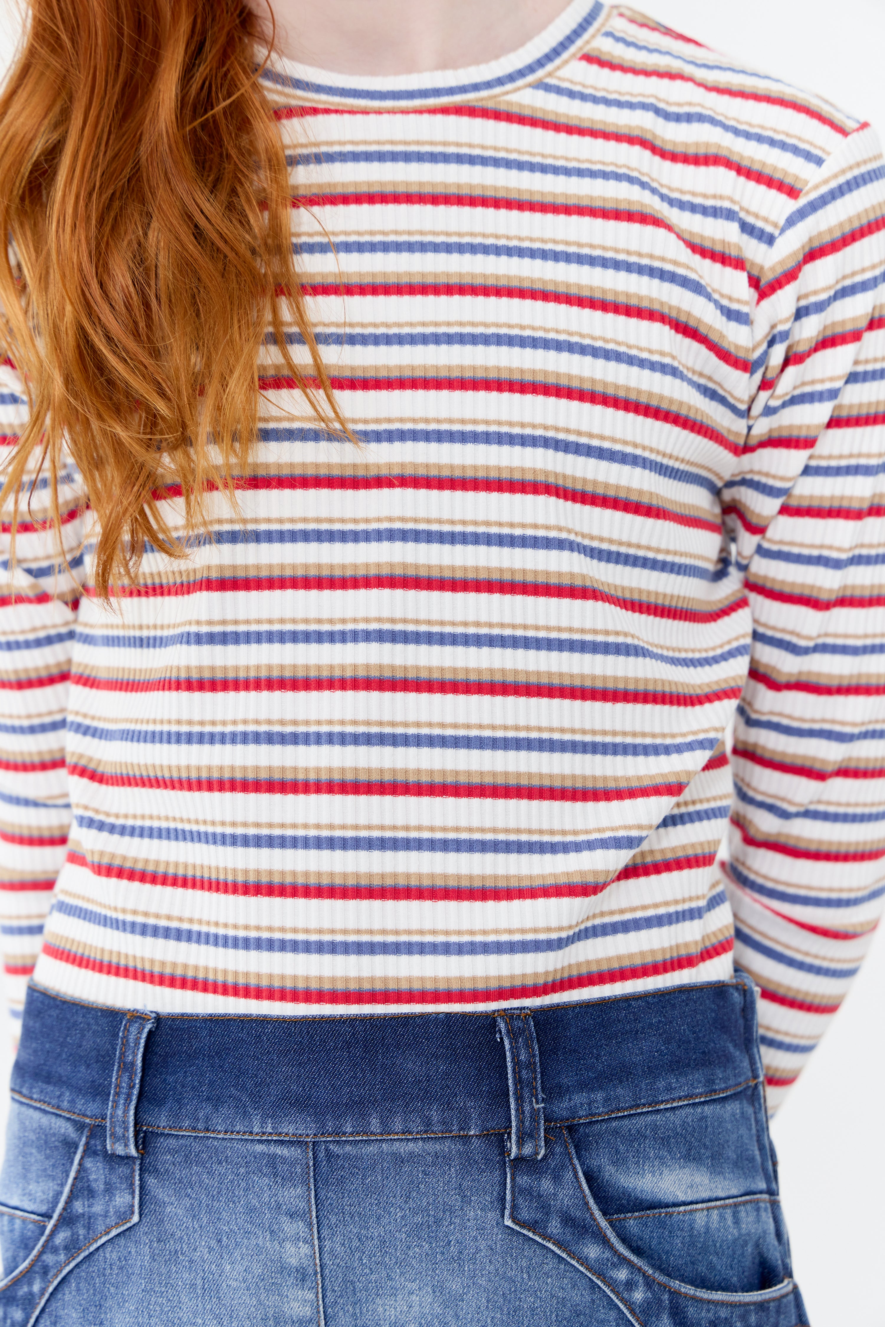 Long sleeve ribbed t-shirt with graphic print. Comes in green and red.