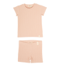 Textured short sleeve t-shirt with patch detail and matching shorts. Comes in blush, sage, and taupe.
