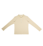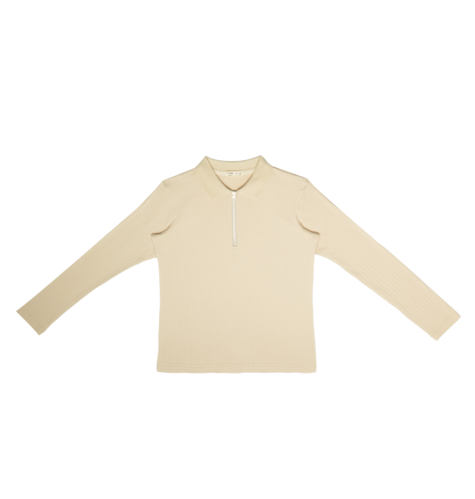 Long sleeve ribbed collared shirt with zipper detail. Comes in blue, grey, tan, vanilla, and yellow.