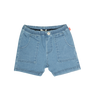 Shorts with elastic waist, button, and pocket detail. Comes in black, blue, grey, light blue, and navy.
