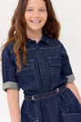 Boxy elbow sleeve button up with collar and front pocket detail. Comes in pink and blue.
