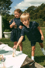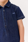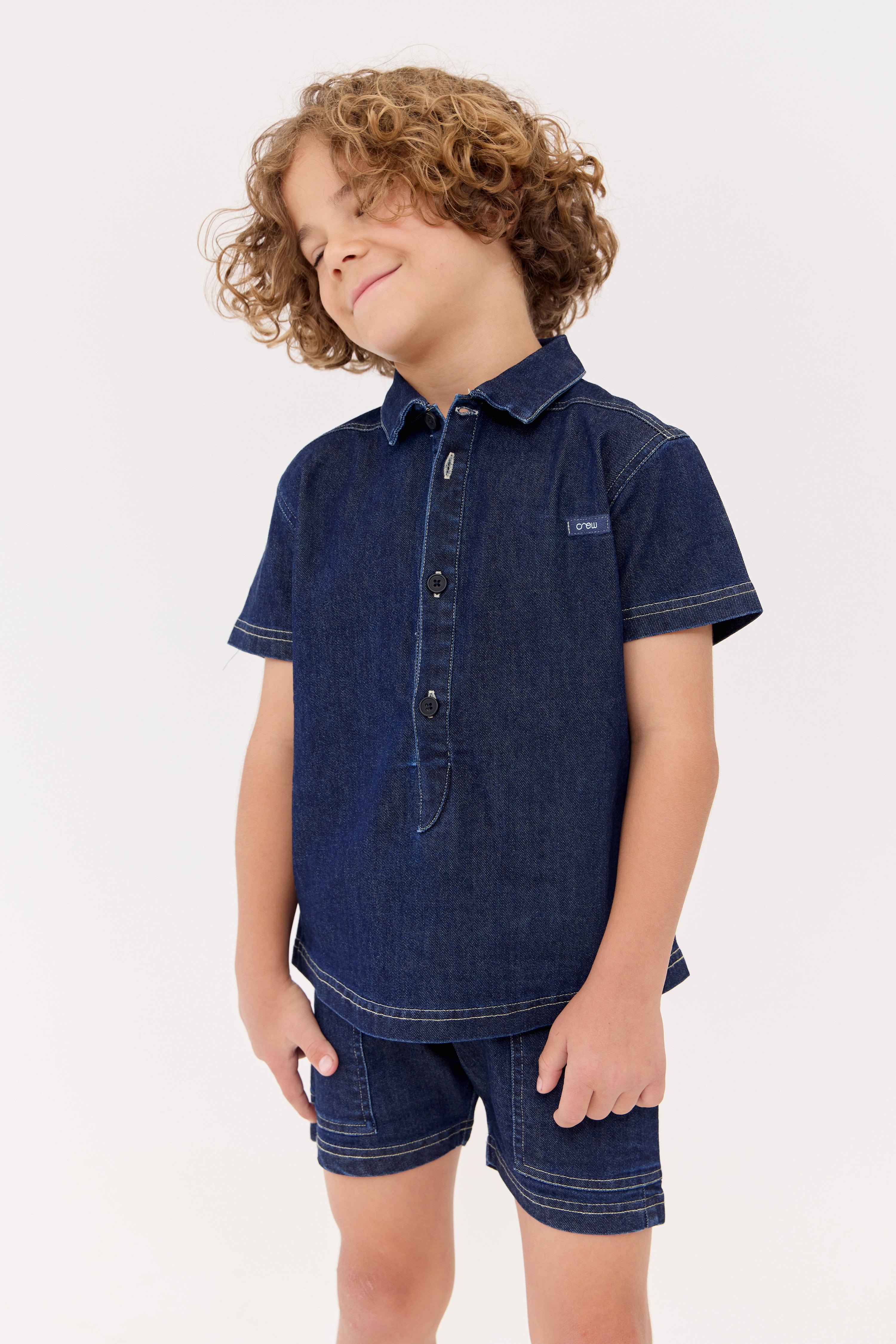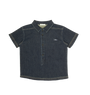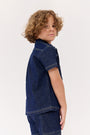 Short sleeve shirt with button and front patch detail. Comes in blue.