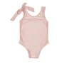One-piece swimsuit with tied bow detail. Comes in lemon, navy, and pink.