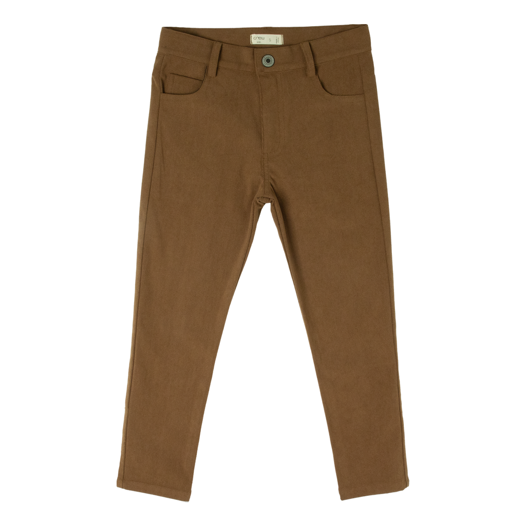 Soft suede-touch pants with a fitted silhouette and cozy feel. Functional button for all sizes. Comes in Black, Camel, and Navy.