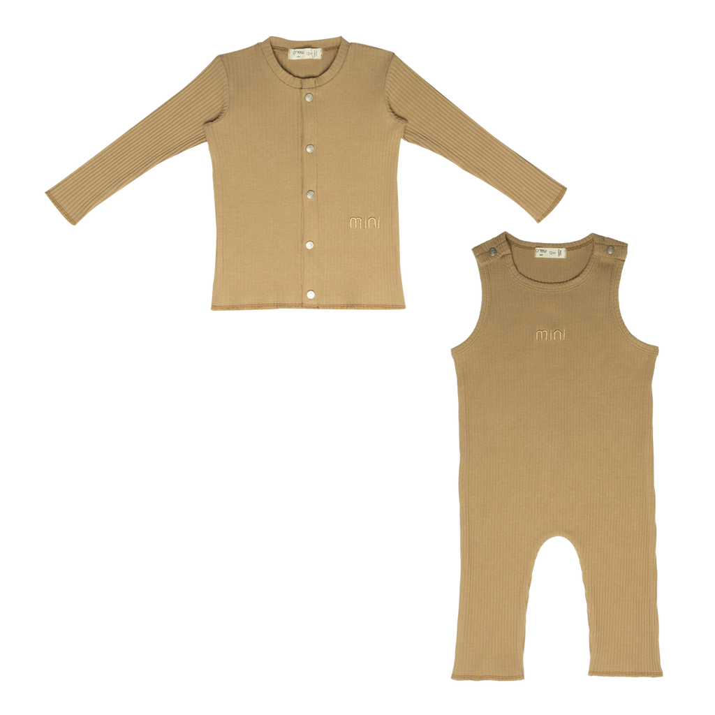 Textured ribbed overall set with soft stretch and snug comfort. Comes in Berry, Cocoa, Grey, and Natural.